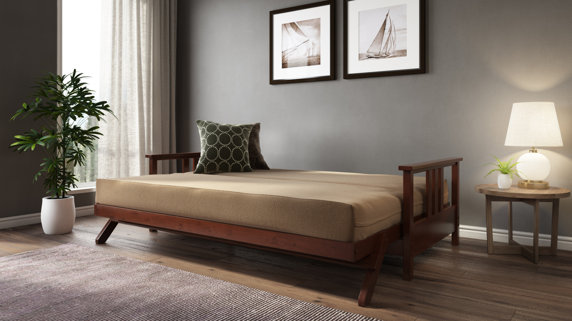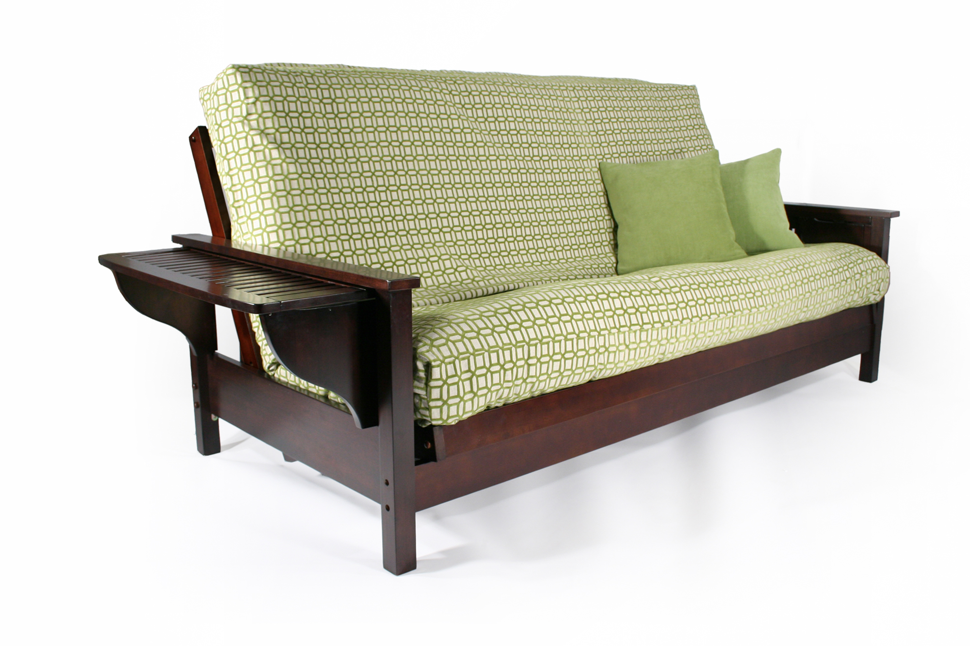 The Durango is available in Warm Cherry, Dark Cherry, Black Walnut and Gray in full and queen sizes. In Twin Chair + Ottoman, Full Loveseat + Ottoman, and Queen Loveseat + Ottoman it is available in Warm Cherry, Dark Cherry, and Black Walnut. To learn more about our size choices, visit our Dimensions page.