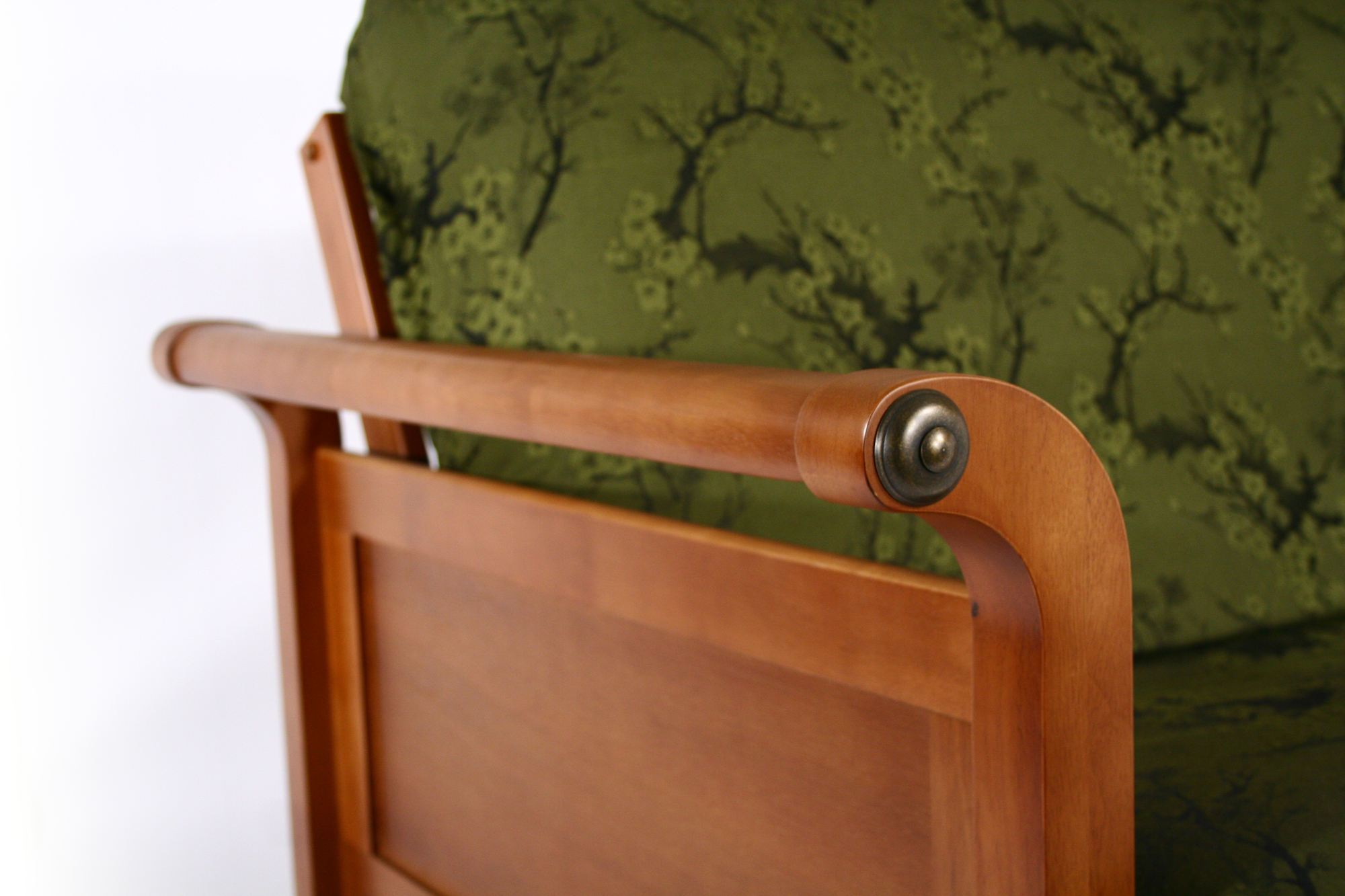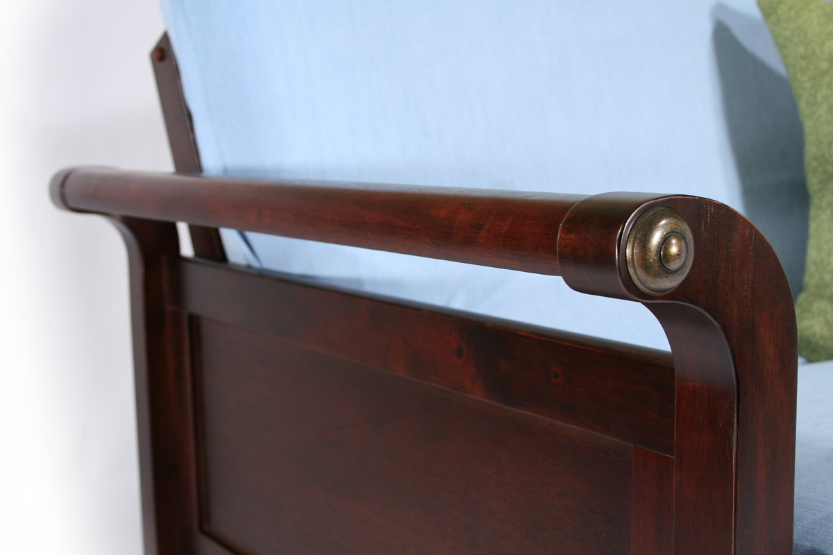 The classic Lexington is part of our Carriage Collection and made from our quality imported hardwood. The Lexington utilizes our Wall Hugger™ technology and comes in two finishes: Warm Cherry and Dark Cherry. The Lexington features a sleigh-style arm accented with a brass knob to add character to any room.
