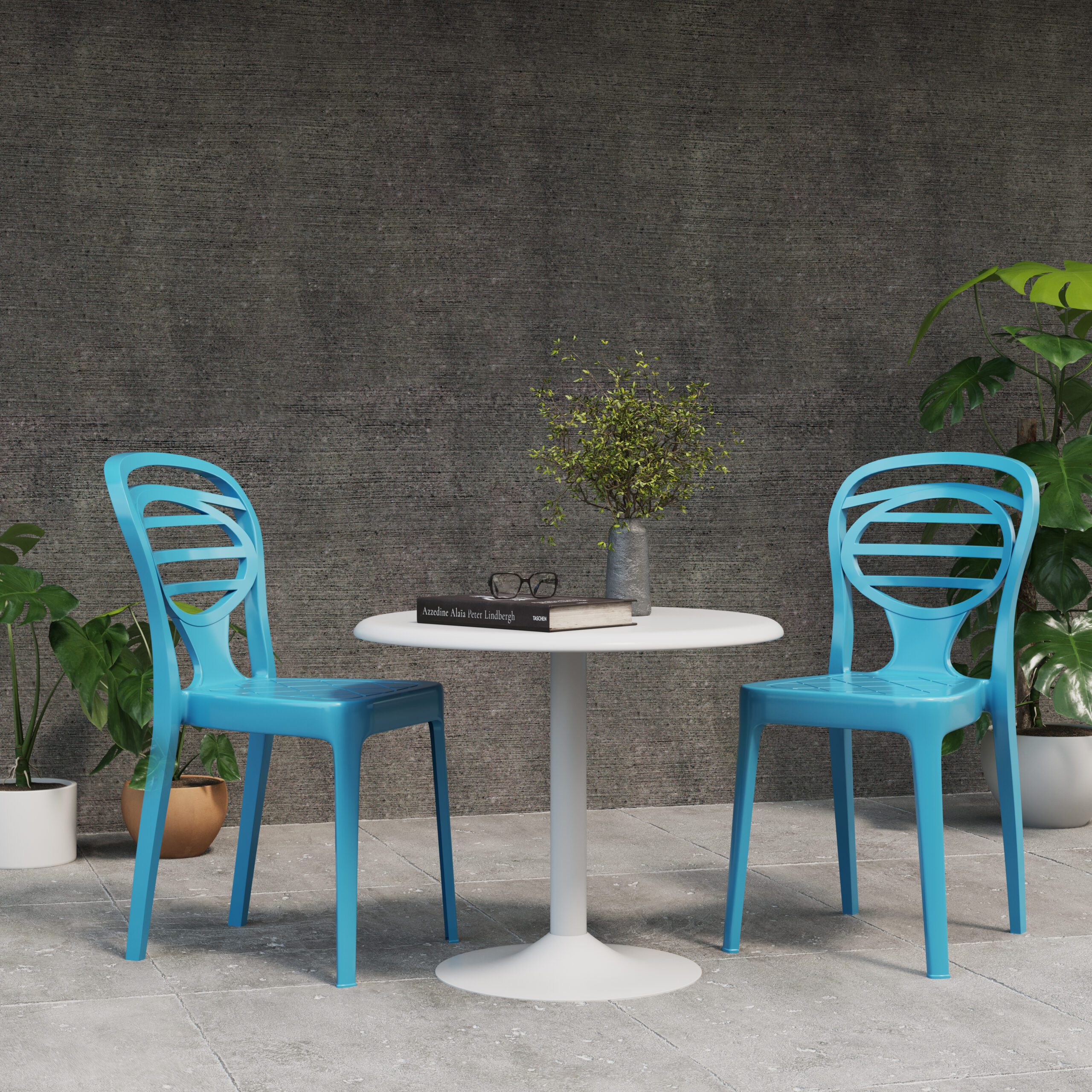 Blue patio chairs