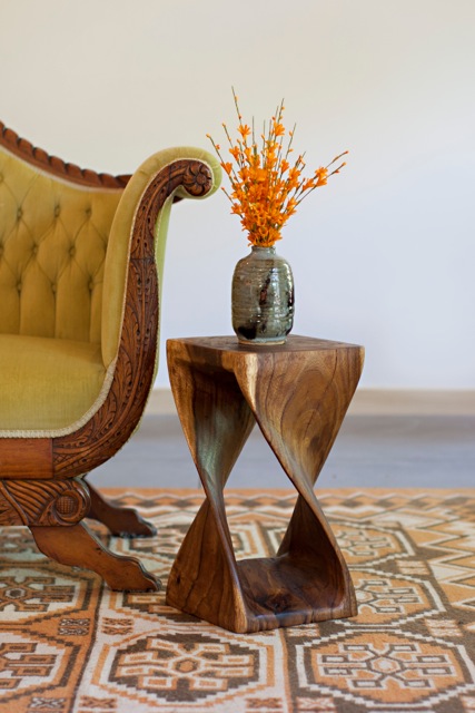 Our classic twist end table brings rustic style and an architectural look next to your sofa or bedside. It showcases a curving square body that’s ideal for holding a small table lamp or displaying your favorite framed photos. The frame is crafted from solid acacia wood with wood scoring and a rustic walnut oil finish for a light sheen from every angle.